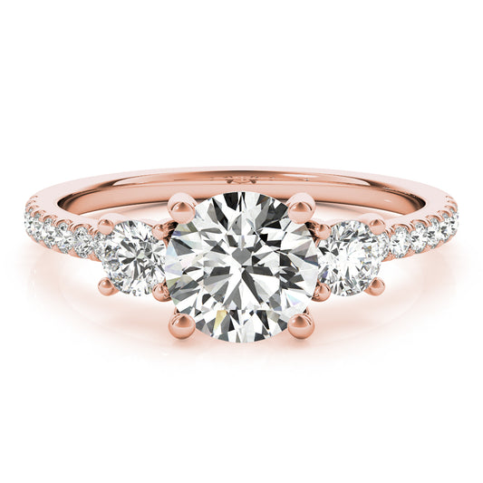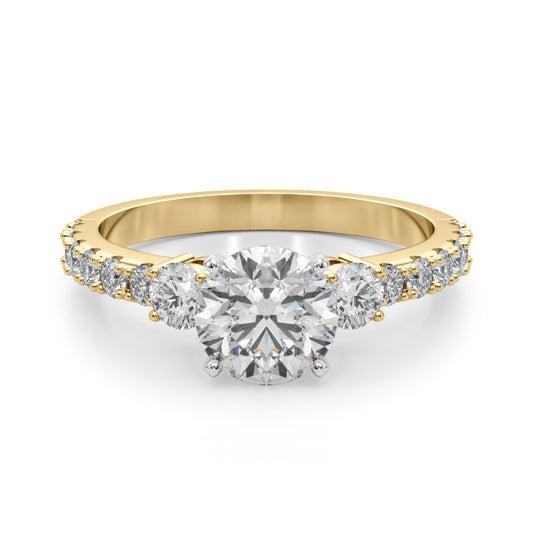 Three Stone Round Cut Lab-Diamond Pave with Prong Setting Ring