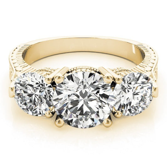 Lab-Grown Diamond Three Stone Round Cut 4 Prong Engagement Ring