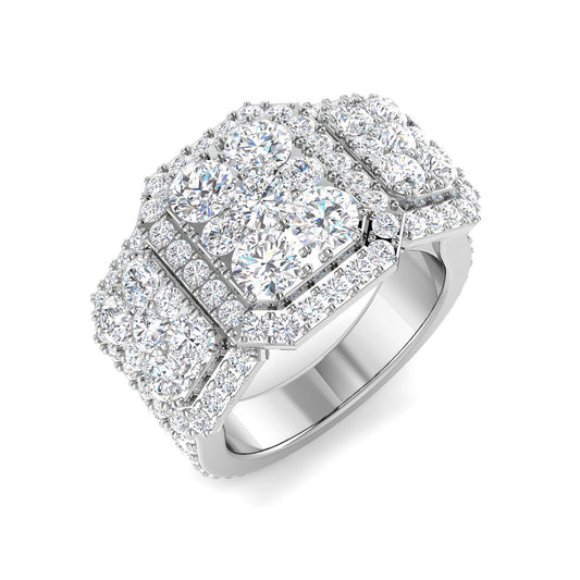 Lab Grown Three Stone Round Cut D/VVS Diamond Pave Set Ring