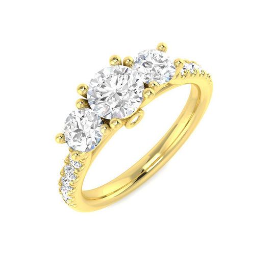 Three-Stone Round Cut Lab-Grown Diamond Engagement Ring with Split Shank