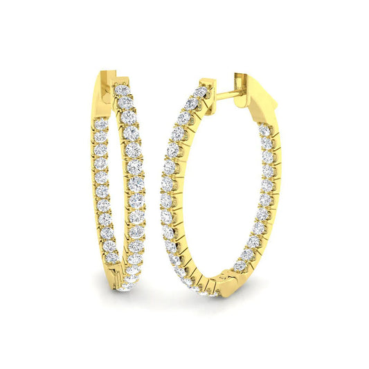 1.60 Ct Natural & Lab-Grown Round Diamond Hoop Earrings | Pavé Set | 9K/18K Gold, Platinum