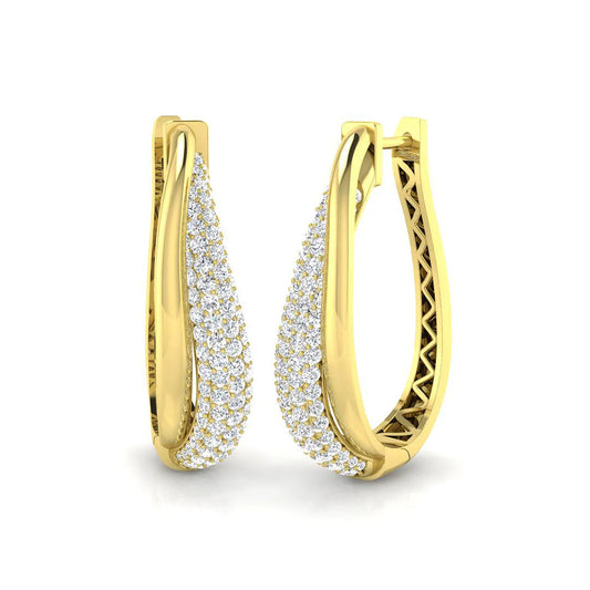 0.75Ct Round Cut Diamond Hoop Earrings | Pavé Setting | 9K/18K Gold, Platinum
