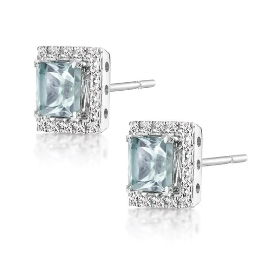 0.27Ct Lab Grown Diamond Solitaire Aquamarine Princess Halo Stud Earrings in Gold