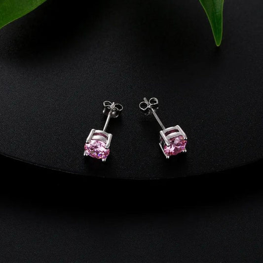 0.45Ct Sapphire Pink Round Solitaire Studs Earring in White Gold
