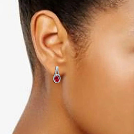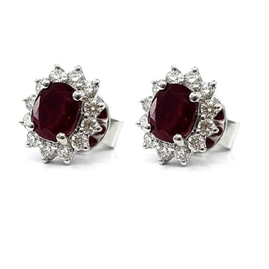 0.07Ct Lab Grown Diamond Oval Ruby White Gold Studs Earring