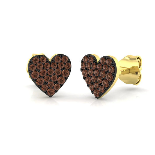 0.25ct Natural Brown Diamond Heart Shape Cluster Earrings in Hallmarked Gold – UK Crafted
