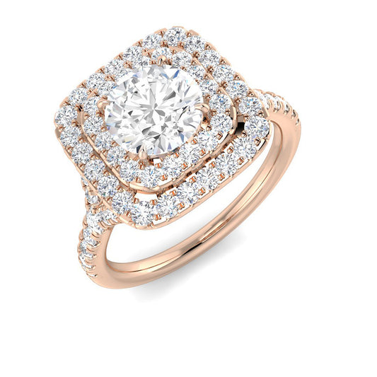 Lab Grown Round Cut Diamond Halo Engagement Ring In 18K Rose Gold.