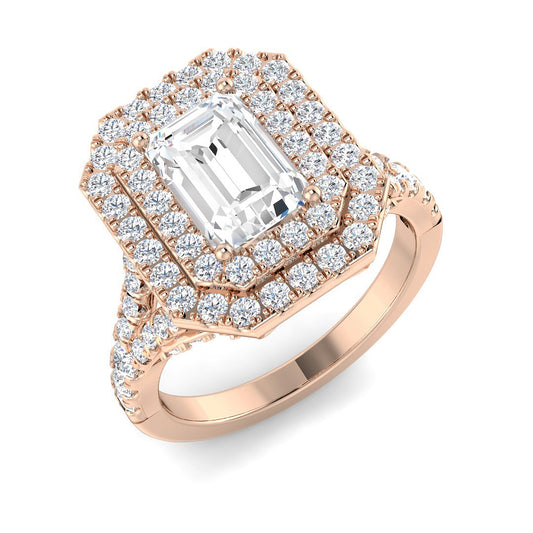 Lab Grown Round & Emerald Cut Diamond Halo Engagement Ring
