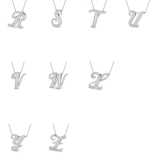 Diamond Script Initial Pendant with Baguette and Round Diamonds