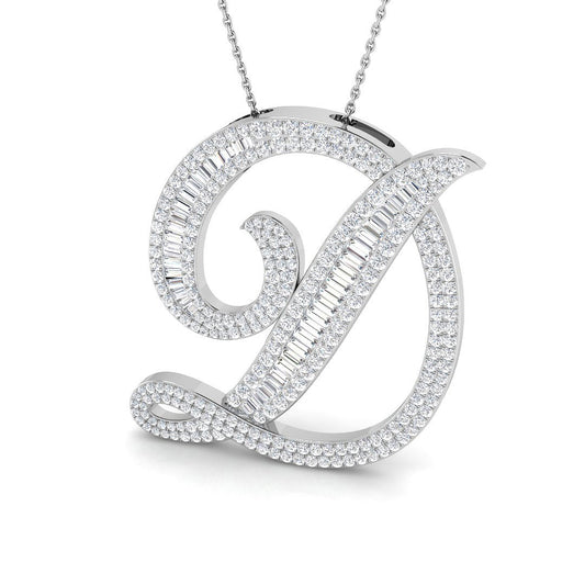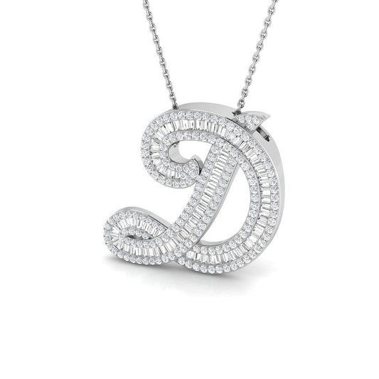 Diamond Script Initial "D" Pendant with Baguette & Round Diamonds