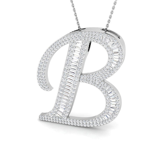 Diamond Script Initial Pendant with Baguette and Round Diamonds