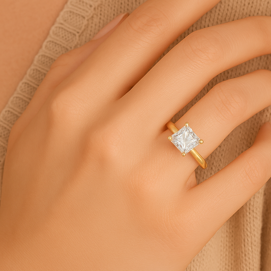 IGI Lab-Grown Princess Cut D-VVS Diamond Four Prong Solitaire Engagement Ring.