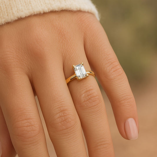 IGI Lab-Grown Emerald Cut Diamond 4-Prong Solitaire Engagement Ring Gift For Her.