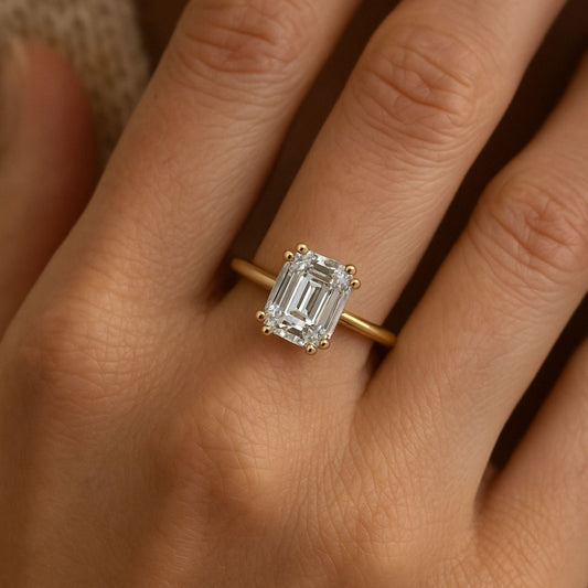 IGI Lab-Grown Emerald Cut D-VVS Diamond Solitaire Engagement Ring.