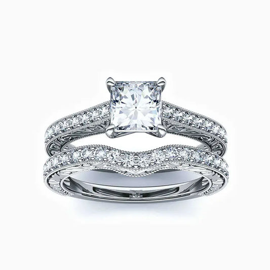 1.50 Carat Lab Grown Princess Diamond Bridal Engagement Ring Set