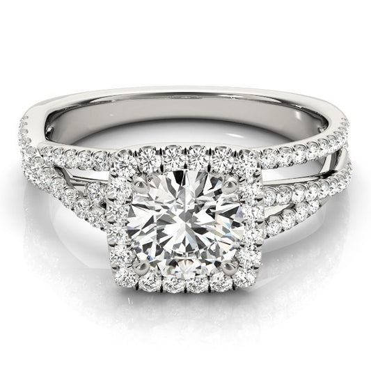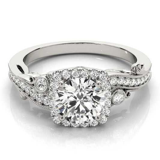 Lab Grown Round Diamond Halo Engagement Ring 18K White Gold