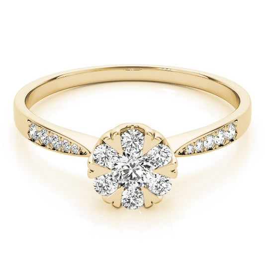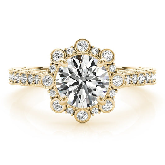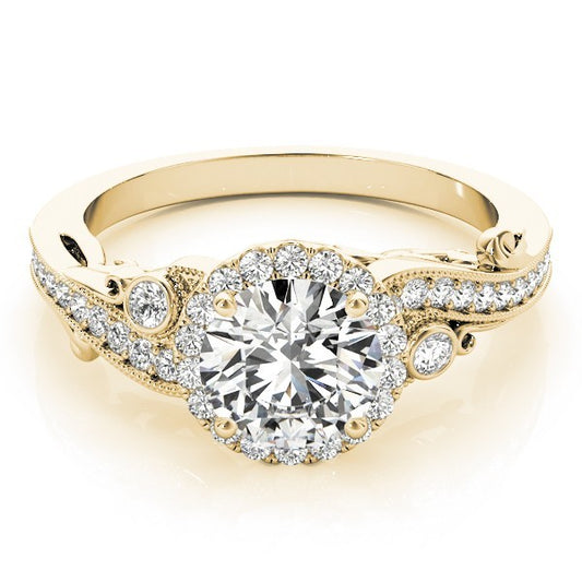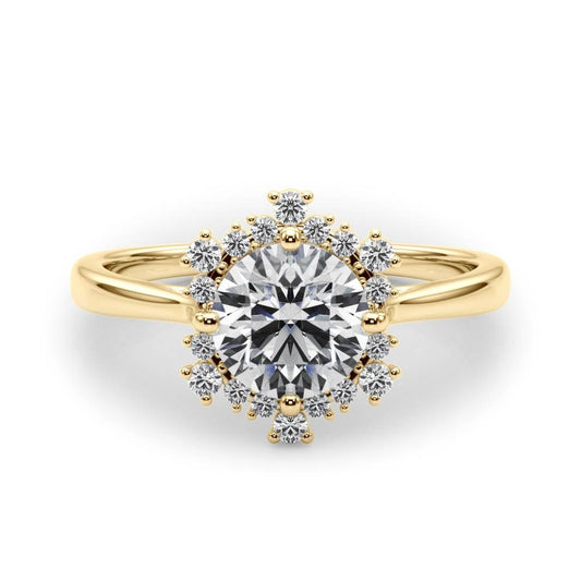 Lab Grown Round Diamond Halo Engagement Ring 18KYellow Gold