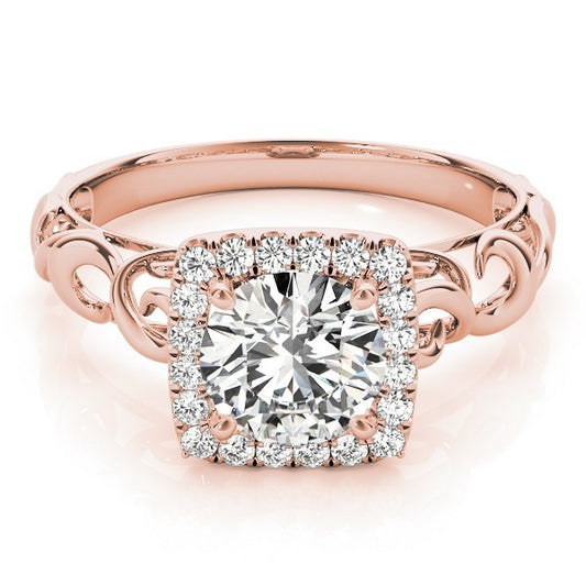Lab Grown Round Diamond Halo Engagement Ring in 18K Rose Gold