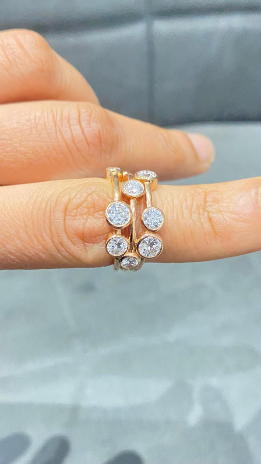 18K Rose Gold Bezel Set Multi Layer Bubble Ring in Lab Grown Diamond