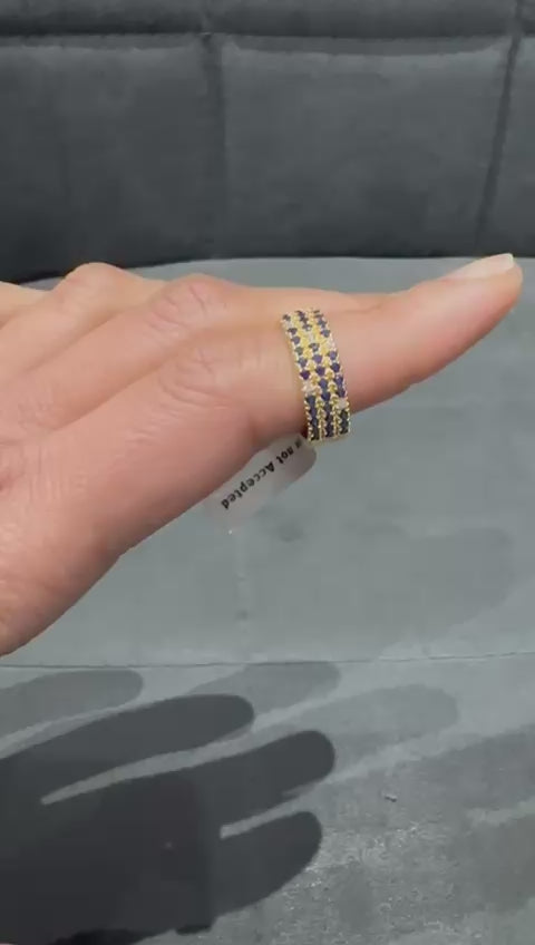 Baguette and Round Cut Triple Row Eternity Diamond Band