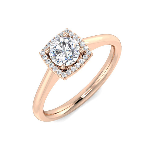 Natural Round Cut Diamond Halo Engagement Square Ring