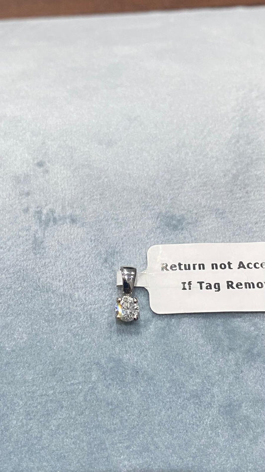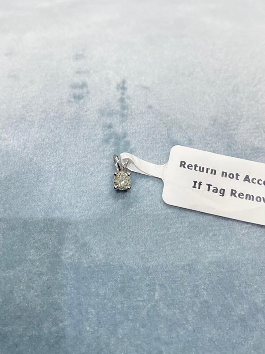 14K White Gold Double Loop Round Solitaire Natural Diamond Pendant
