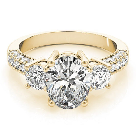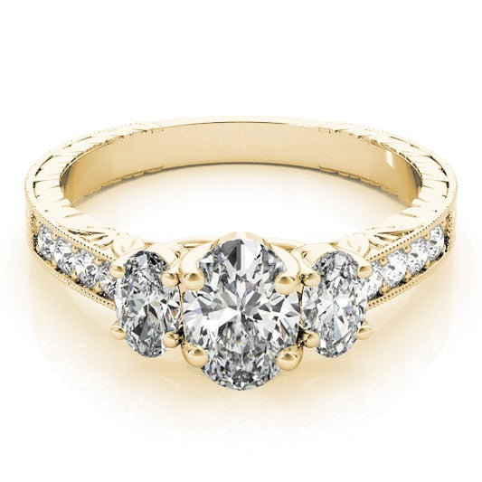 18K Yellow Gold Oval Cut Trilogy Engagement Ring – 2Ct DE/VS Lab Grown Diamond