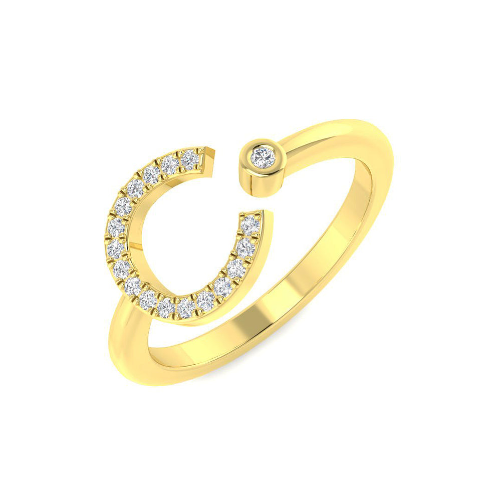 Chic and personal, this Letter C Diamond Initial Ring features a clean open-band silhouette with a pavé-set “C” and a bezel-set round diamond accent. With 0.11 carat of round brilliant diamonds, this ring delivers subtle sparkle and modern elegance — perfect for everyday wear, stacking, or gifting with meaning.