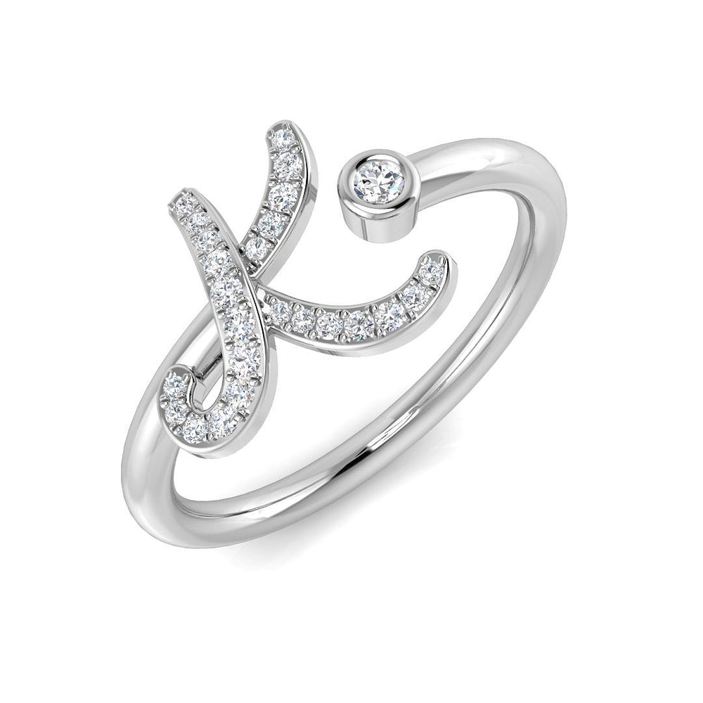 Verleihen Sie Ihrem Look mit diesem wunderschön gestalteten Ring mit dem Initial „K“ in Schreibschrift einen Hauch persönlicher Eleganz. Der Ring ist mit 0,12 Karat runden Brillanten besetzt. Das anmutige „K“ funkelt im Mikropavé-Stil , während ein Solitär-Diamant in Zargenfassung für einen modernen Akzent sorgt. Gefertigt in Gold oder Platin Ihrer Wahl, ist dieser Ring der perfekte Ausdruck von Persönlichkeit und Stil.