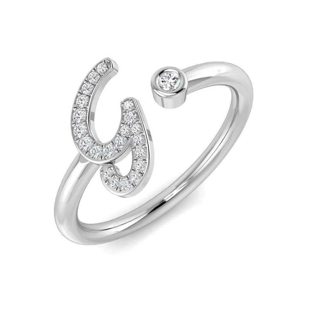 Verleihen Sie Ihrem Look mit diesem wunderschön gestalteten Ring mit dem Initial „G“ in Schreibschrift einen Hauch persönlicher Eleganz. Der Ring ist mit 0,13 Karat runden Brillanten besetzt. Das anmutige „G“ funkelt im Mikropavé-Stil , während ein Solitär-Diamant in Zargenfassung für einen modernen Akzent sorgt. Gefertigt in Gold oder Platin Ihrer Wahl, ist dieser Ring der perfekte Ausdruck von Persönlichkeit und Stil.