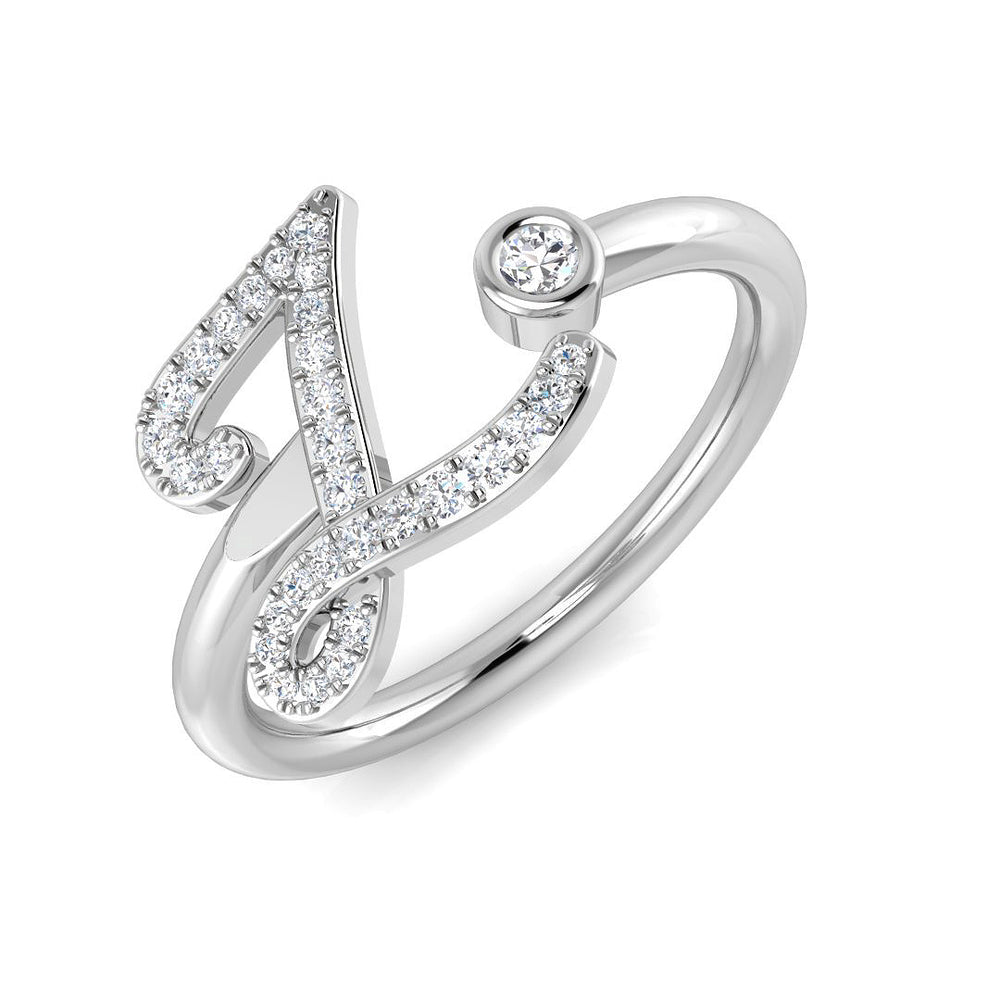 Add a touch of personal elegance with this beautifully designed script Z initial ring, featuring 0.13 carat of round brilliant diamonds. The graceful letter “Z” sparkles with micro pavé-set diamonds, while a bezel-set solitaire accent adds modern flair. Crafted in your choice of gold or platinum, this ring is the perfect expression of identity and style.