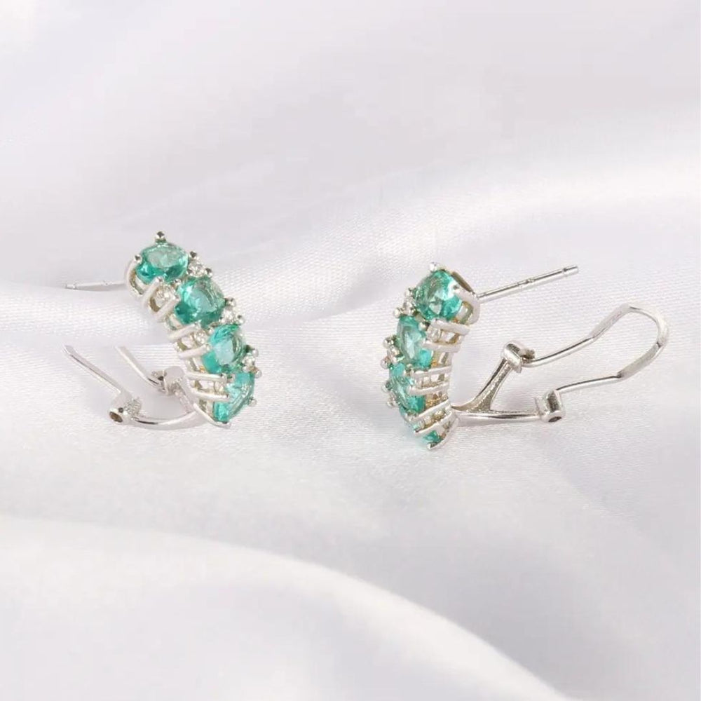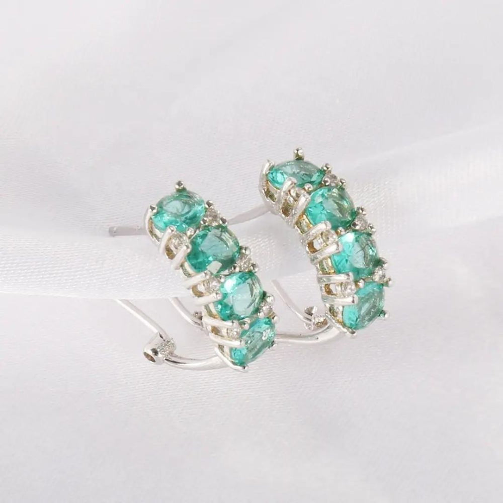 This passage describes a pair of elegant earrings made by master jewellers. The earrings feature emeralds and lab-grown diamonds set in handcrafted sterling silver. The lab-grown diamonds are described as real diamonds that offer great value for money and are an ethical choice. The earrings have a total diamond weight of 0.16 carats and feature a main stone that is a combination of emerald and lab-grown diamond. The emerald size is approximately 1.10 carats, and the main stone shape is round. The metal used is silver, and the diamond quality is described as premium. The setting is a claw setting, and the earrings are handcrafted in the UK using conflict-free and nickel-free materials. The passage also mentions that the weights, gem colors, and sizes are approximate and may vary slightly. Customers have the option to choose between sustainable lab-grown diamonds or certified mined diamonds for their earrings.