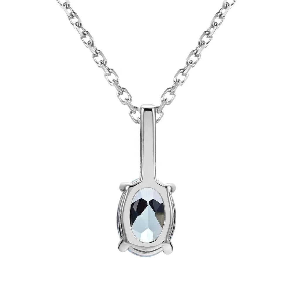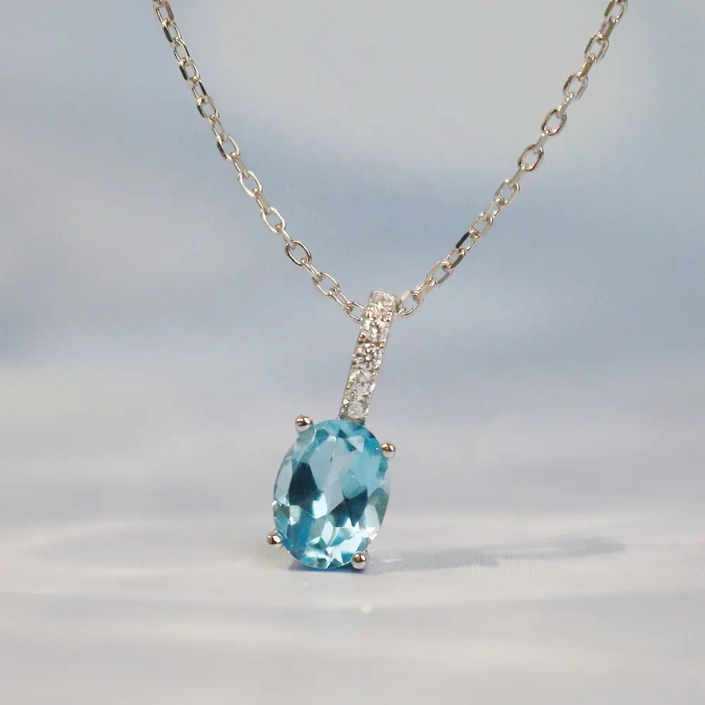 Indulge in the beauty of this 0.34 carat oval shape aquamarine stone drop necklace. With the addition of a 0.10 carat natural round diamond in a claw setting, this 18k gold necklace exudes elegance and sophistication. Elevate any outfit with the perfect touch of sparkle.