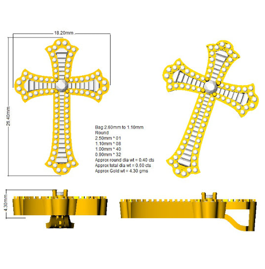 Dieser elegante Kreuzanhänger vereint Tradition und moderne Eleganz. Baguette-Diamanten sind vertikal und horizontal angeordnet und werden von Pavé-gefassten Brillanten für maximales Funkeln eingerahmt. Die fließende Silhouette und der zentrale Brillant unterstreichen die Schönheit und Symbolik des Designs. Handgefertigt in 9- oder 18-karätigem Gold.