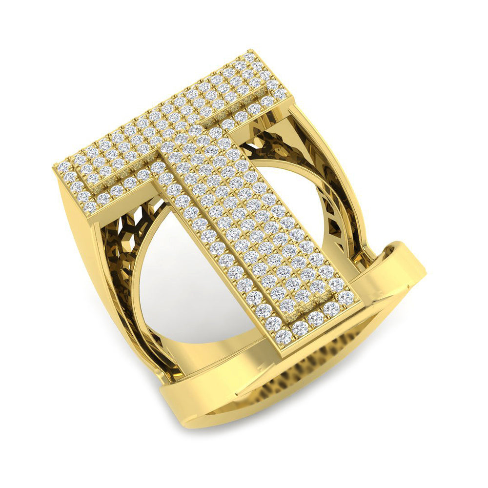 Mit diesem kühnen und funkelnden Initialenring mit 0,86 Karat Diamanten ziehen Sie alle Blicke auf sich. Das große, blockartige „T“ ist vollständig mit runden Brillanten besetzt. Der Ring besticht durch seine flache Form und die breite Ringschiene und ist ein echter Hingucker – perfekt für alle, die ihren Namen, ihre Identität oder ihre Initialen stolz und funkelnd tragen möchten.