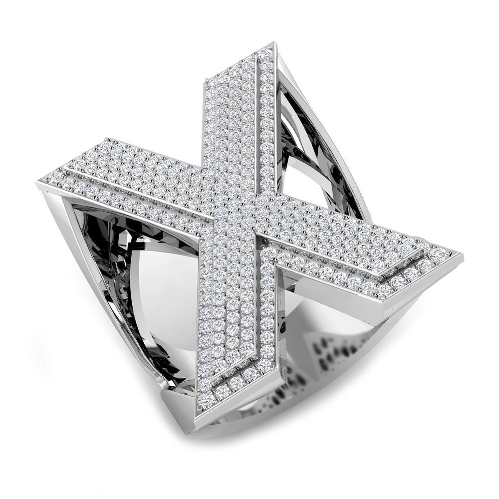 Mit diesem kühnen und funkelnden Initialenring mit 0,96 Karat Diamanten ziehen Sie alle Blicke auf sich. Das große, blockartige X ist vollständig mit Brillanten besetzt. Der Ring besticht durch seine flache Form und die breite Ringschiene und ist perfekt für alle, die ihren Namen, ihre Identität oder ihre Initialen stolz und funkelnd tragen möchten.