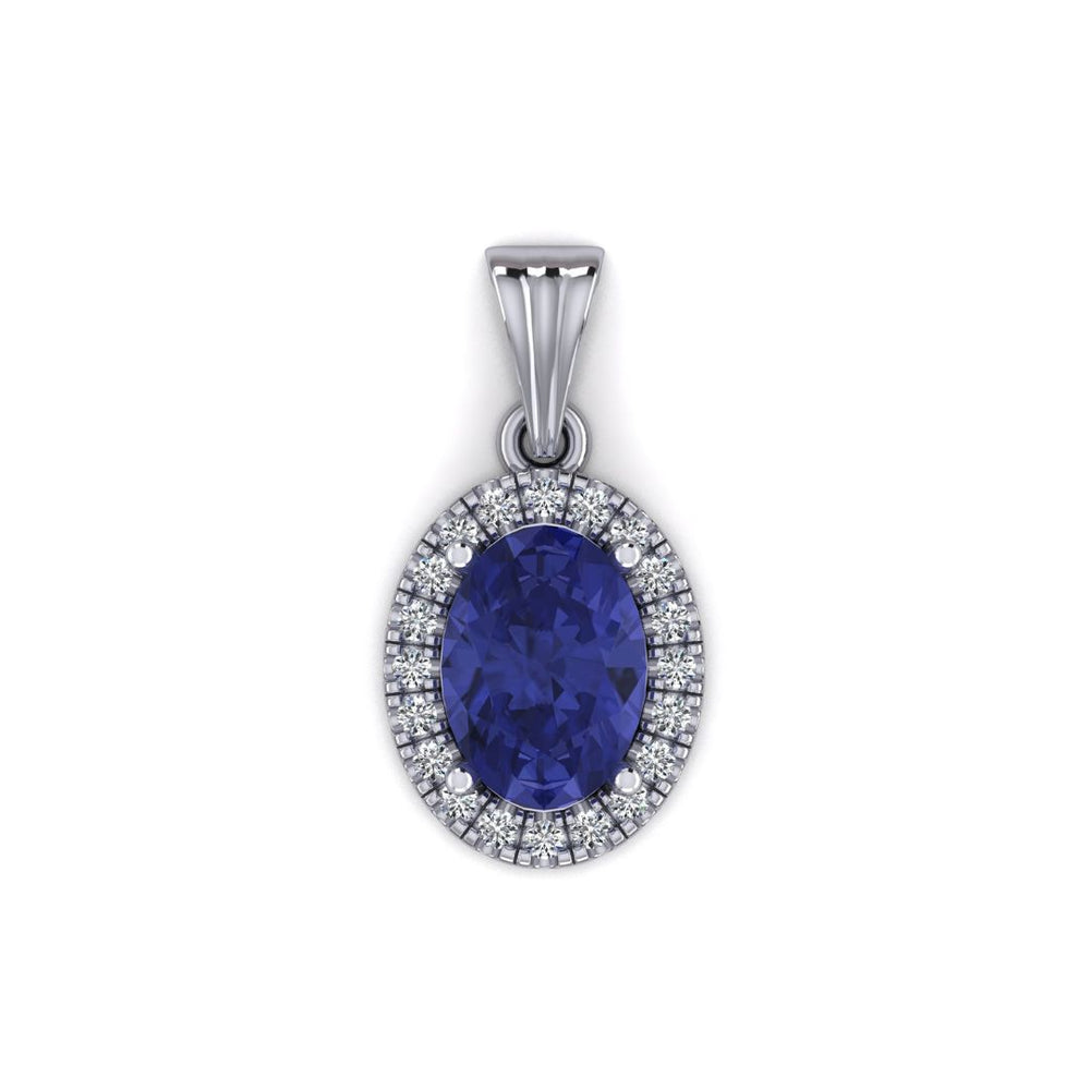 Wir präsentieren unseren handgefertigten Anhänger, dessen Design einen faszinierenden, runden blauen Saphir perfekt in Szene setzt, der von einem Kranz funkelnder Diamanten umrahmt wird. Gefertigt aus luxuriösem 18-karätigem Weißgold mit klassischer Krappenfassung, strahlt dieses exquisite Schmuckstück zeitlose Eleganz und raffinierten Luxus aus.