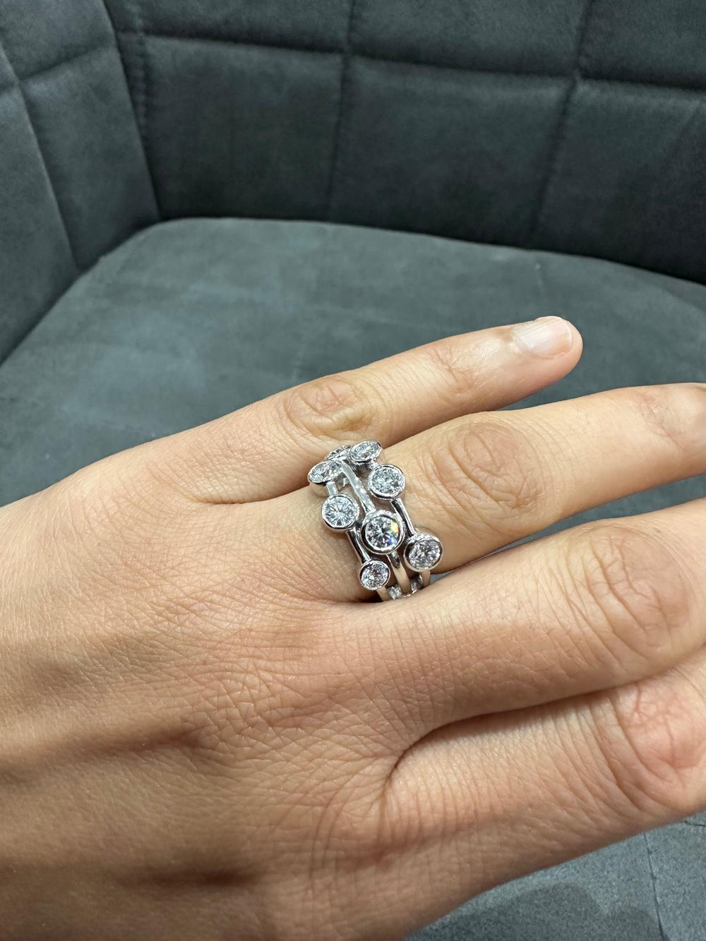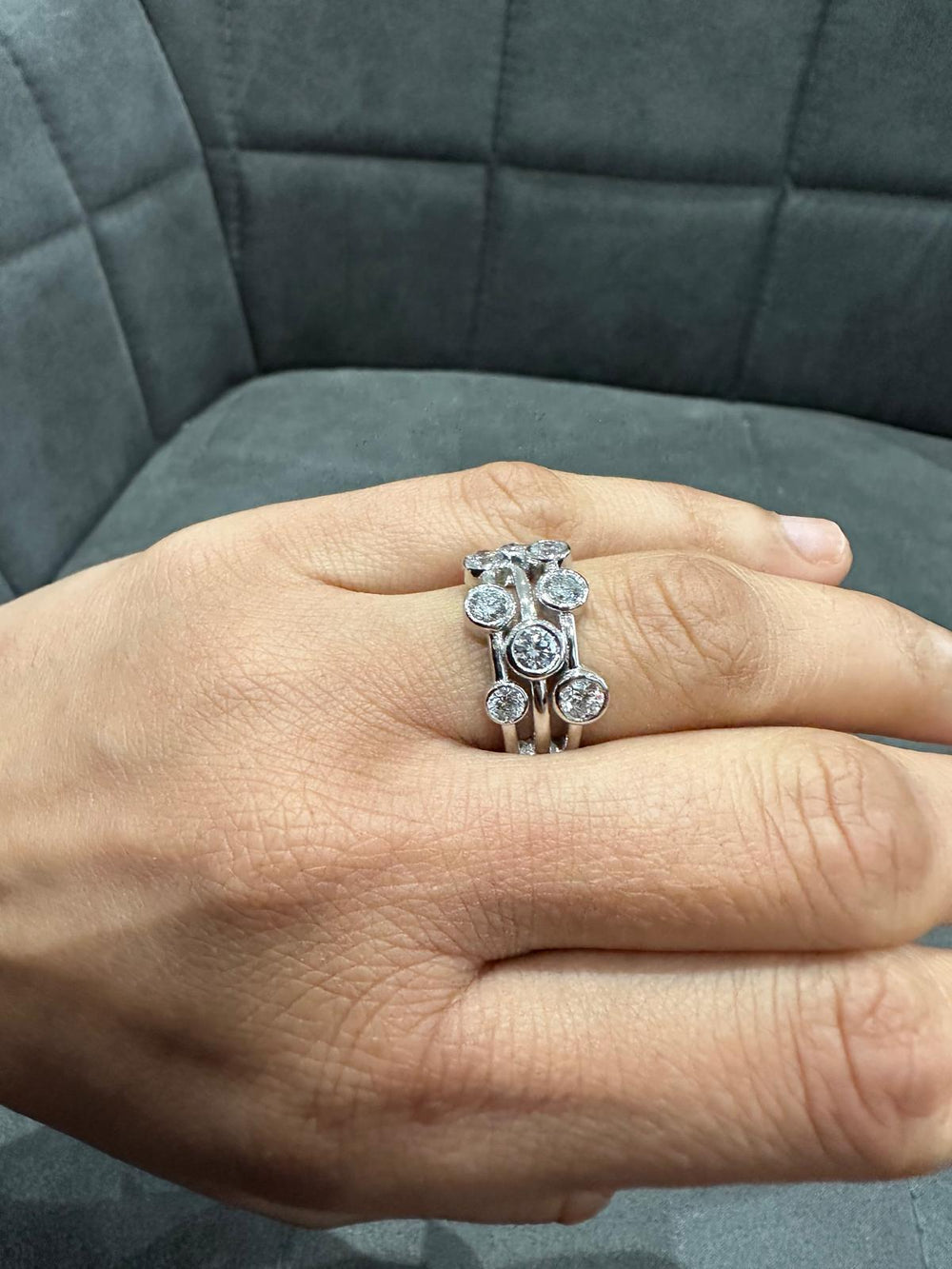 Mit einem bemerkenswerten Gesamtgewicht von 2,00 Karat besticht dieser Ring durch außergewöhnliches Funkeln und eine beeindruckende Präsenz. Jeder einzelne Diamant wurde sorgfältig nach seiner hervorragenden Farbe DE und Reinheit VS ausgewählt, was für strahlenden, nahezu farblosen Glanz und ein makelloses Erscheinungsbild sorgt. Das mehrschichtige Design verleiht dem Ring Tiefe und moderne Eleganz und macht ihn zum perfekten Schmuckstück für jeden Schmuckliebhaber.