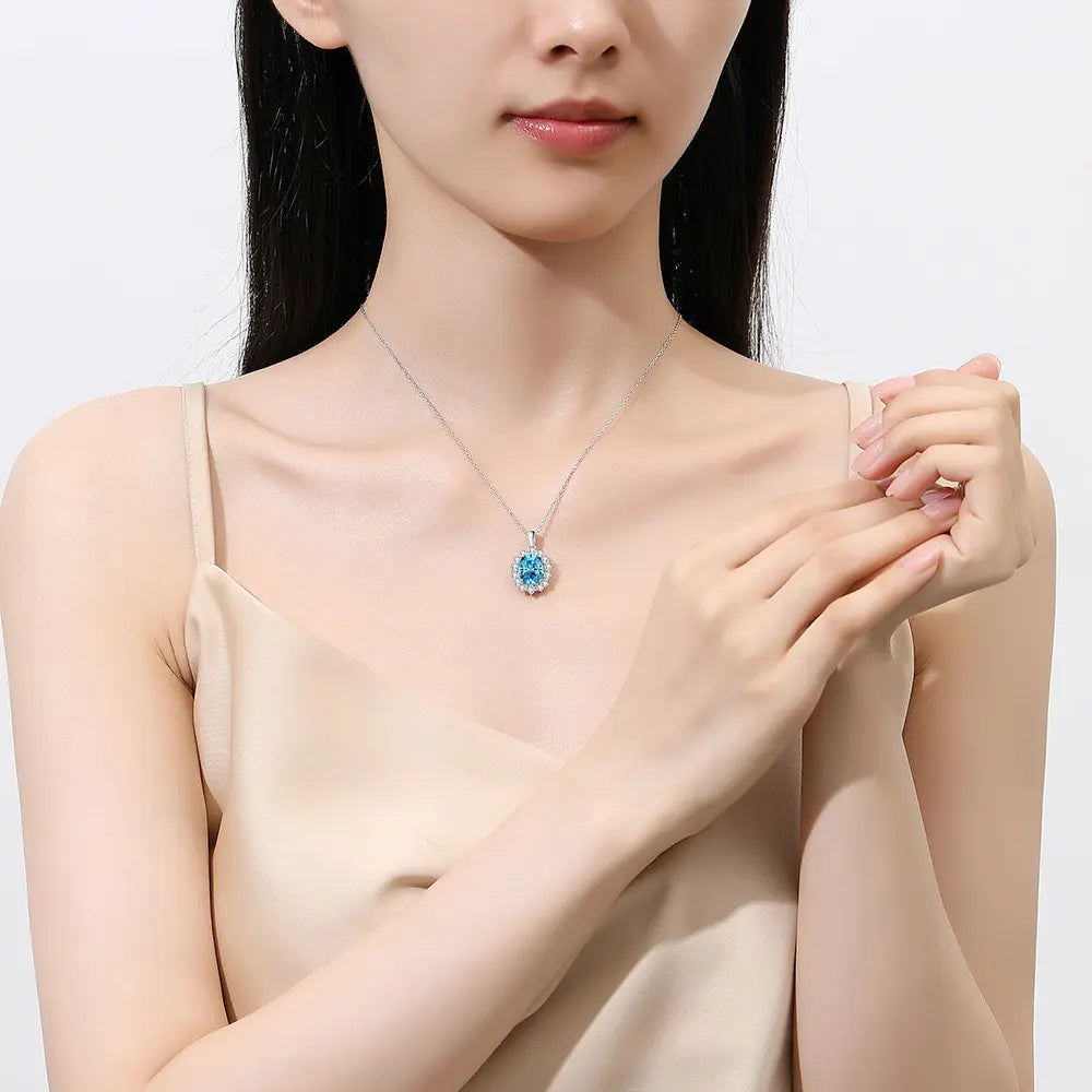 Experience the beauty and luxury of our 2.29 carat oval shape aquamarine cluster necklace. Adorned with a stunning 1.54 carat oval shape aquamarine stone and 0.75 carat lab grown round diamond, this necklace exudes elegance and sophistication. Set in 18k gold and expertly crafted in a claw setting, it's the perfect addition to any jewelry collection.