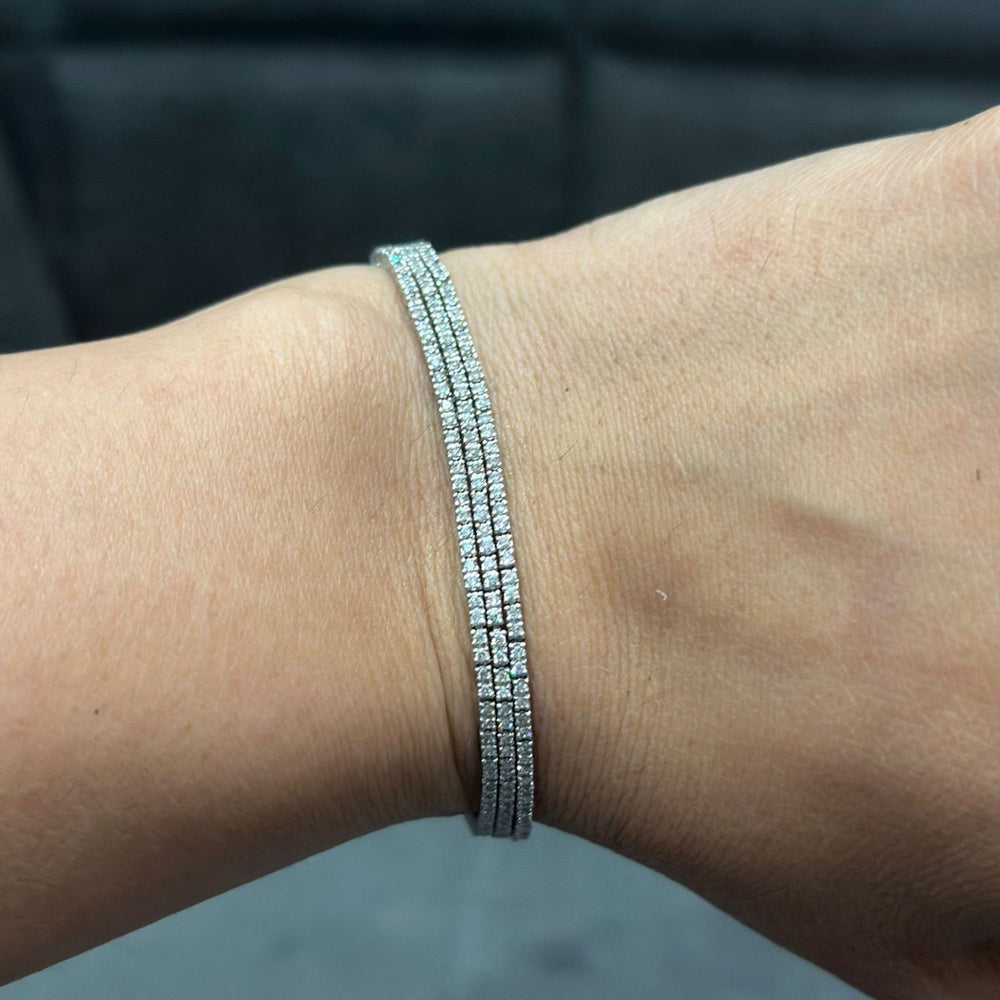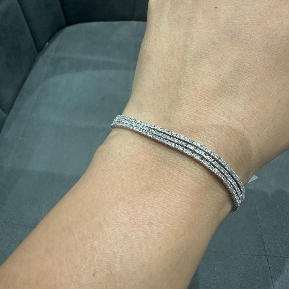 Mit einem Gesamtgewicht von 3,00 Karat wird jeder einzelne Diamant sorgfältig nach seiner herausragenden Farbe (FG) und Reinheit (SI) ausgewählt. Dies garantiert eine strahlende, nahezu farblose Brillanz mit außergewöhnlichem Feuer. Das elegante, mehrreihige Design verleiht dem Schmuckstück einen strahlenden, hochwertigen Look, der am Handgelenk wunderschön zur Geltung kommt.