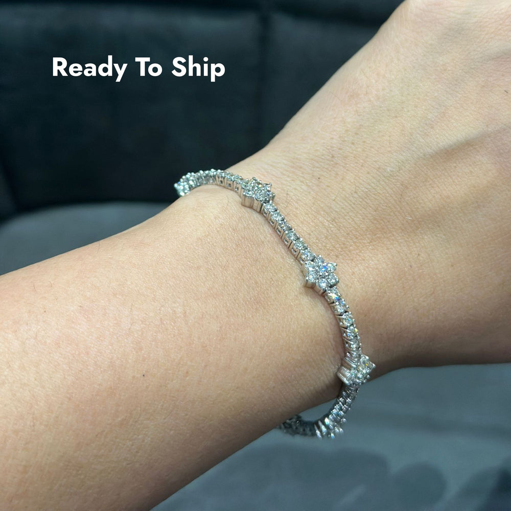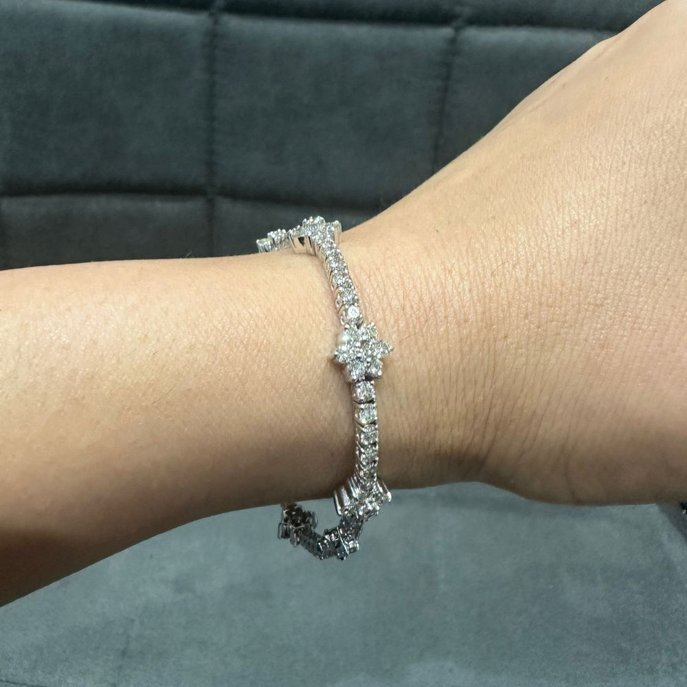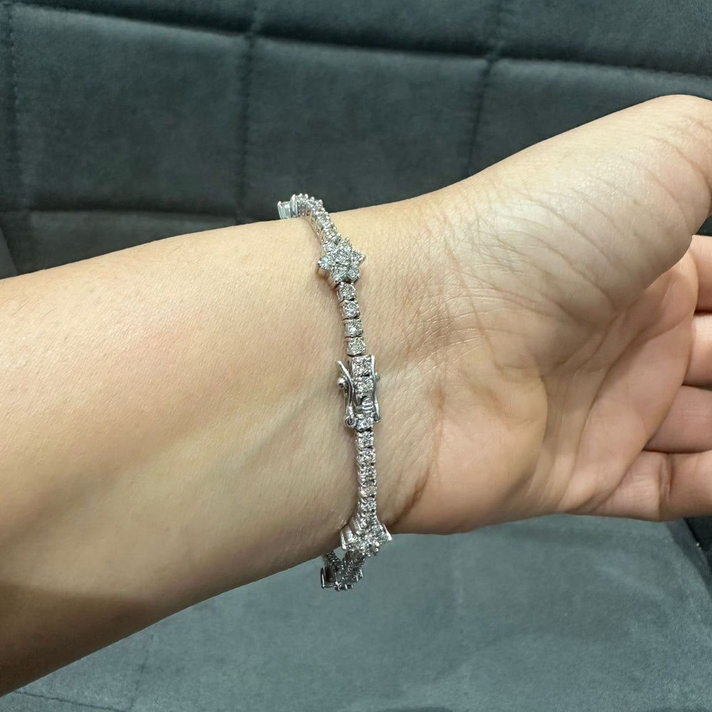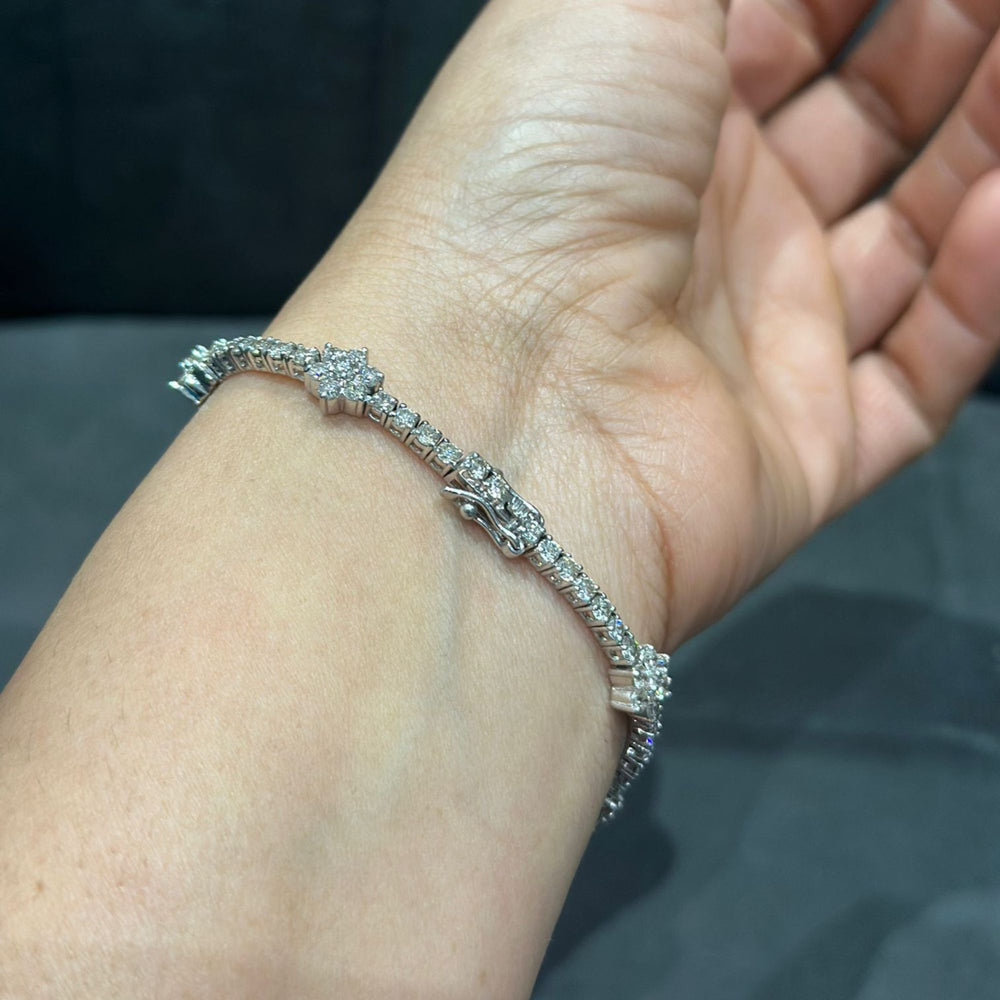 Gönnen Sie sich luxuriöse Brillanz mit diesem atemberaubenden Tennisarmband mit 5,25 Karat Naturdiamanten , meisterhaft gefertigt aus strahlendem 9-karätigem Weißgold . Das Armband besticht durch abwechselnd angeordnete, runde Diamantcluster und funkelnde Diamantglieder und bietet außergewöhnlichen Glanz und Tiefe – perfekt für Frauen, die exklusiven Schmuck lieben.