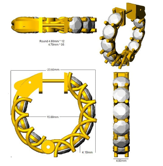 Verleihen Sie Ihrer Schmucksammlung mit diesen atemberaubenden Ohrringen mit runden Diamanten einen Hauch von Brillanz und Luxus. Die Ohrringe sind mit natürlichen und im Labor gezüchteten Diamanten mit einem Gesamtgewicht von 8,75 Karat besetzt.