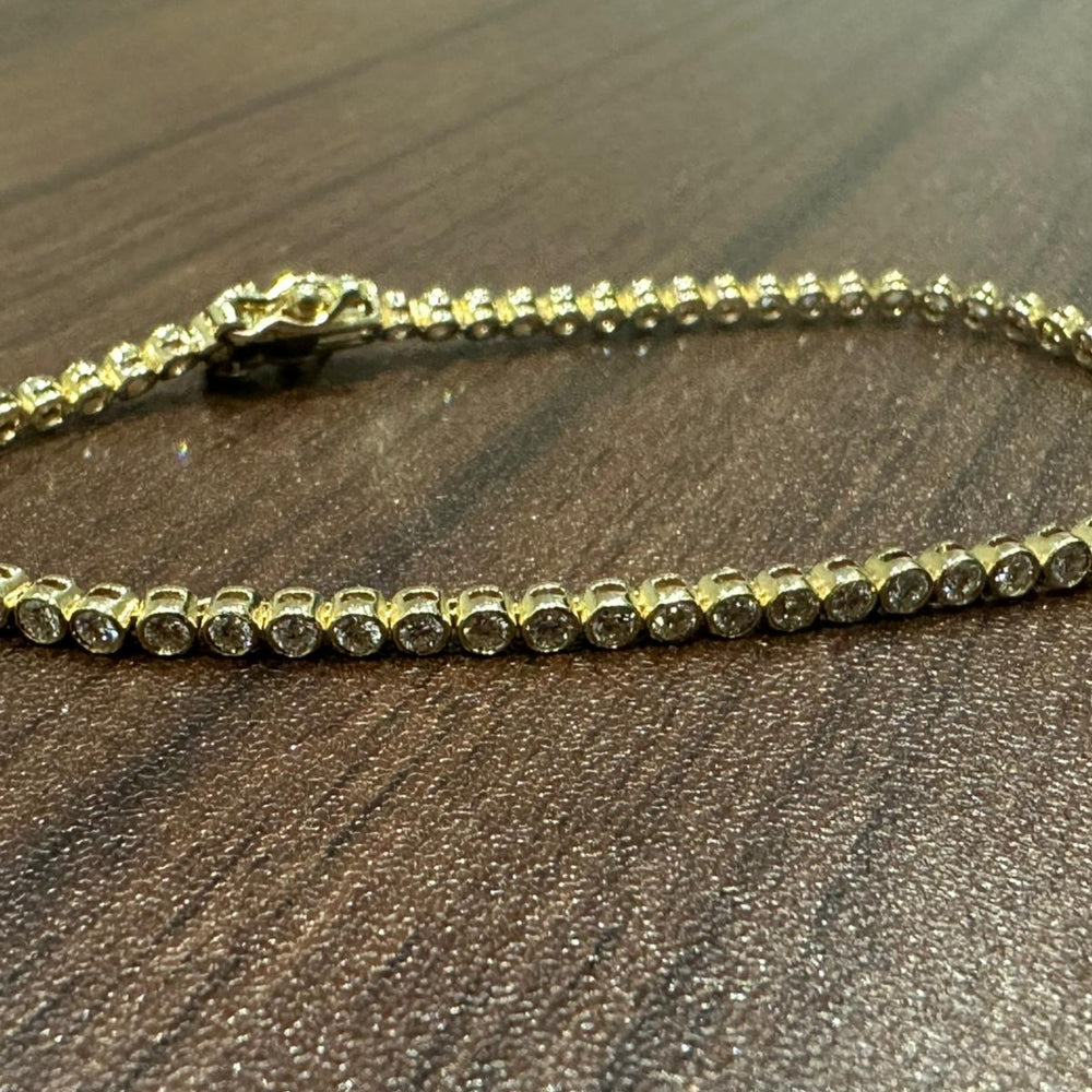 Verleihen Sie Ihrer Schmucksammlung zeitlose Eleganz mit diesem atemberaubenden Tennisarmband mit runden Naturdiamanten , das aus luxuriösem 9-karätigem Gelbgold gefertigt ist. Die 2,25 Karat funkelnden Naturdiamanten der Reinheitsgrade GH/SI sind in einer eleganten, modernen Fassung eingefasst, die Brillanz und Langlebigkeit gleichermaßen gewährleistet.