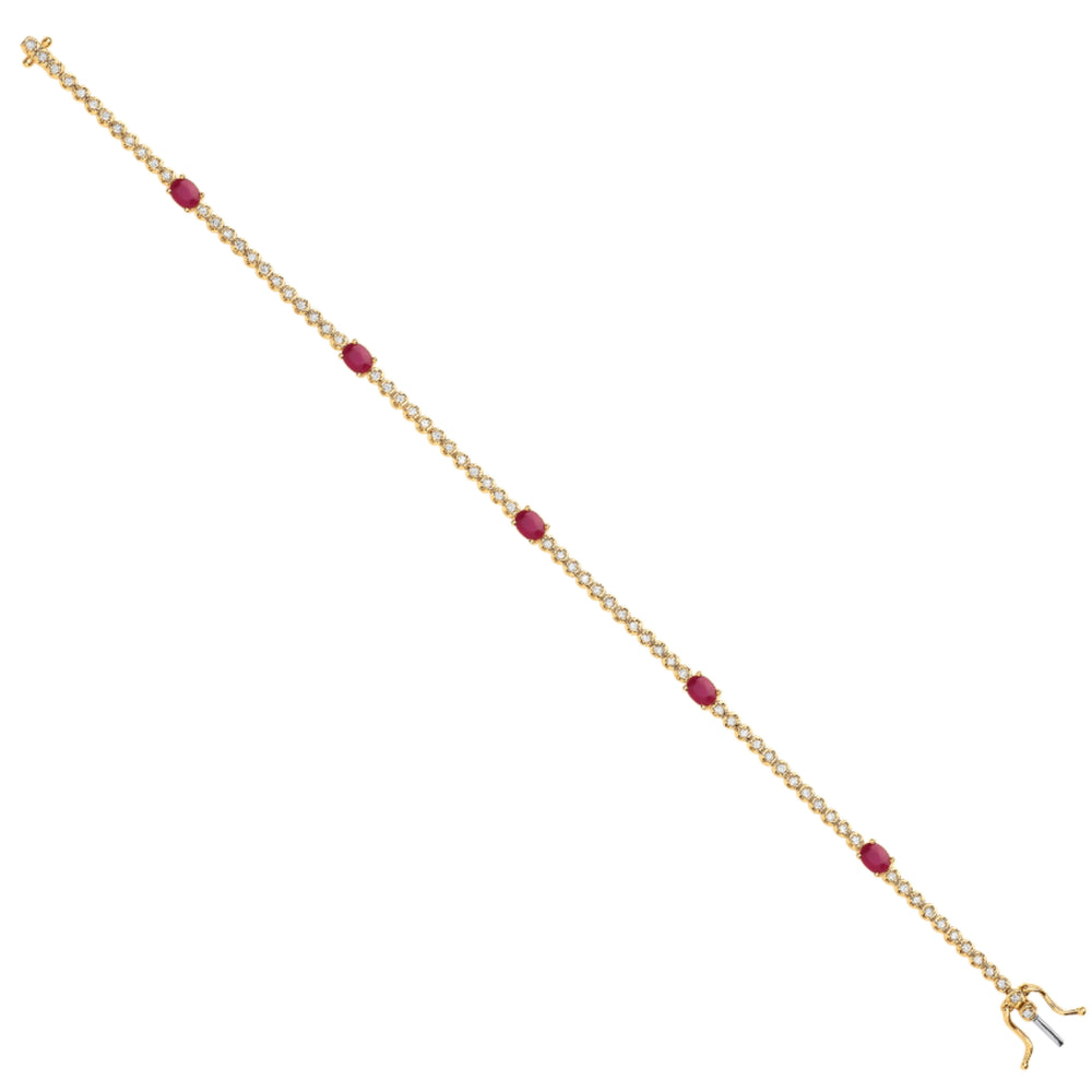 Elevate your jewellery collection with this elegant Ruby and Diamond Bracelet, beautifully handcrafted in 9K Yellow Gold. This bracelet showcases oval-cut ruby gemstone totaling 1.15 carats, each symbolizing July’s birthstone, renowned for bringing wisdom, protection, and serenity. The sapphires are gracefully complemented by natural round diamonds weighing 0.40 carats, in G–H color and SI clarity, adding a brilliant sparkle to the design.