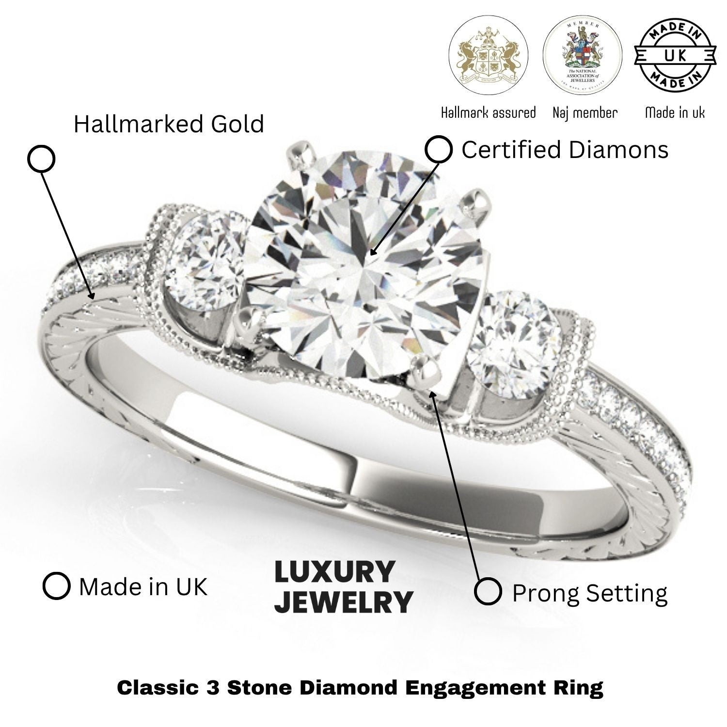 Crafted in premium metals, this ring is hallmarked by the UK Assay Office and is made in the UK to guarantee authenticity and superior craftsmanship. Whether you're looking for an engagement ring, luxurious gift, or special occasion ring, this timeless design is sure to stand out. With 15 days delivery and free UK delivery, this ring is a perfect choice for any celebration.