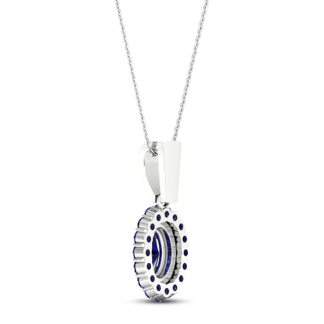 Oval Blue Sapphire and Diamond Pendant in 18K White Gold