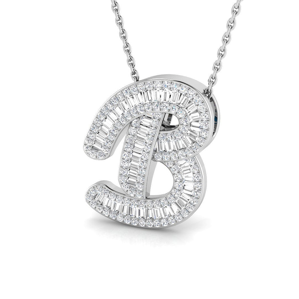 Setzen Sie ein Statement mit dem Anhänger „Diamant Script Initial“ : Das luxuriöse Design mit dem geschwungenen Buchstaben „B“ ist mit einer Kombination aus Baguette- und Rundschliffdiamanten verziert. Ob im Alltag oder zu besonderen Anlässen – dieser Anhänger verleiht jedem Outfit Glanz und Eleganz.