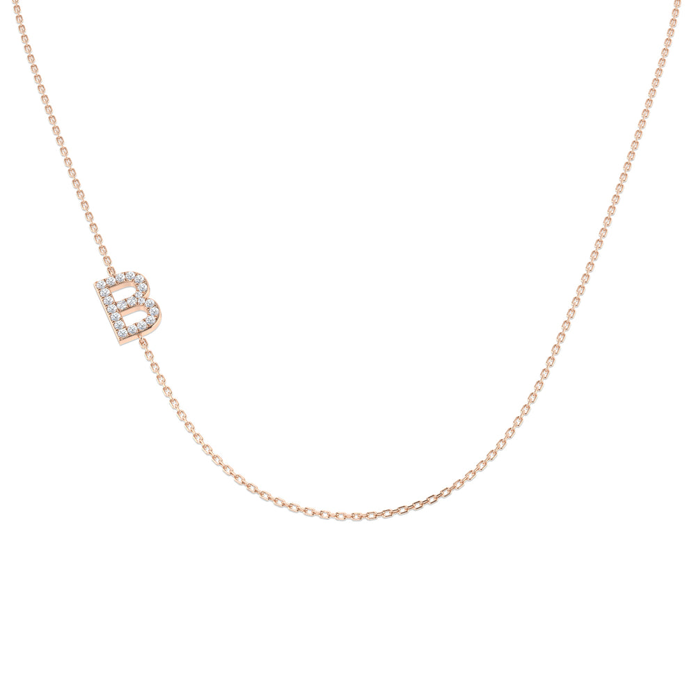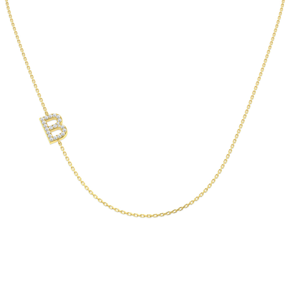 Bereichern Sie Ihre Schmucksammlung mit der Diamant-Halskette mit seitlich angeordnetem Initial . Der elegante Anhänger in Form eines schlanken, seitlich angeordneten „B“ vereint modernen Stil mit einer persönlichen Note und ist somit das perfekte Accessoire für jeden Tag oder ein ideales Geschenk für einen besonderen Menschen .