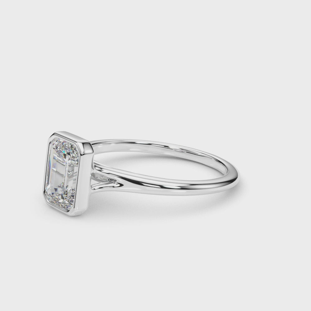 IGI Certified Emerald Cut Lab-Grown Diamond Bezel Solitaire Engagement Ring