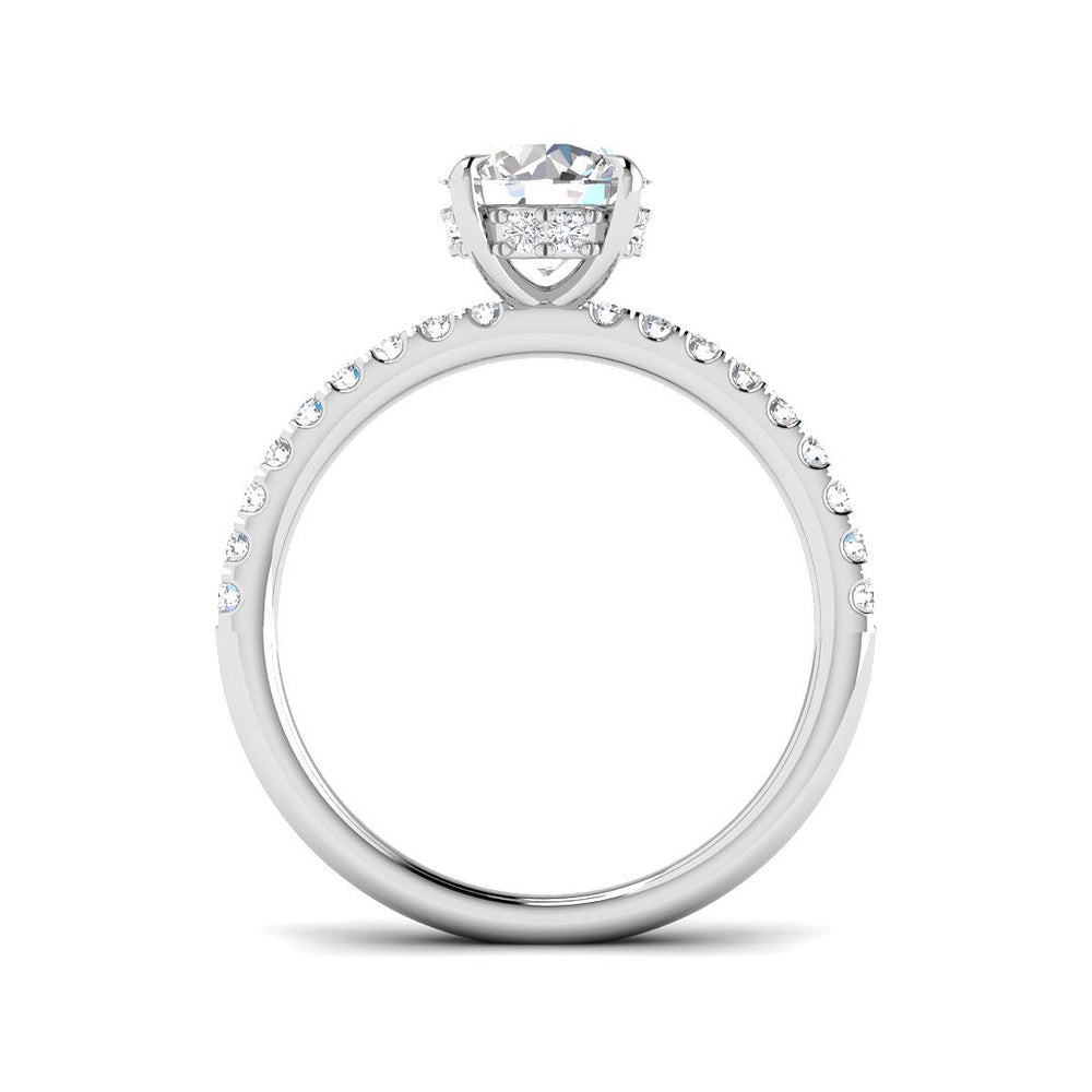 Das Band ist mit präzise gefassten Pavé-Diamanten besetzt, die ein anmutiges Funkeln erzeugen und das Design aufwerten, während der Fokus auf dem Mittelstein liegt. Dieser Ring mit einem IGI-zertifizierten, im Labor gezüchteten Diamanten in der Farbe D und der Reinheit VVS vereint außergewöhnliche Qualität mit einem ethischen Anspruch an die Schmuckherstellung.